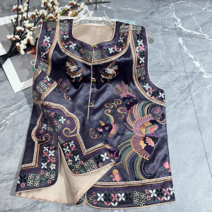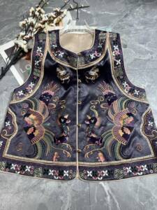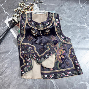 南油批发2025爆款新中式醋酸前后刺绣马甲复古盘扣圆领上衣不退换