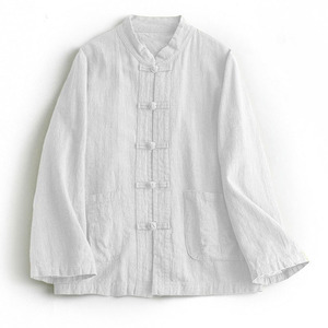 2025秋季新款新中式复古苎麻盘扣外套显瘦百搭棉麻衬衣女大码上衣