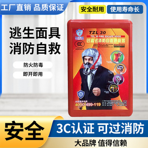 TZL30消防逃生面具防火防烟防毒面罩火灾逃生自救过滤式呼吸器