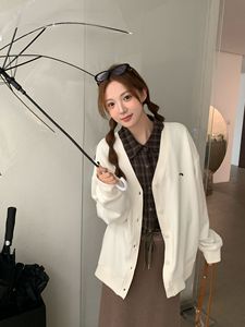 韩系慵懒风百搭卫衣开衫棒球上衣春秋2025新款V领宽松休闲外套女