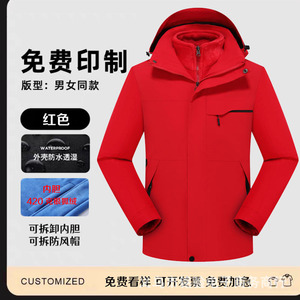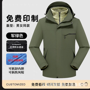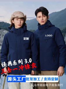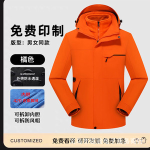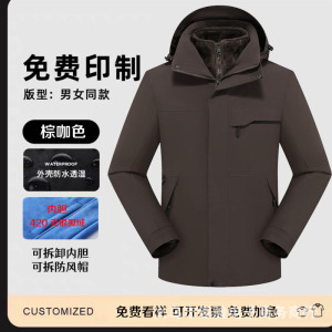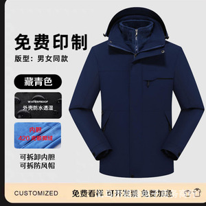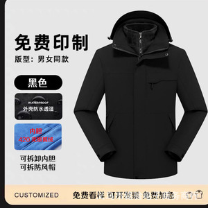 三合一冲锋衣工作服定 制logo男防水透气保暖户外两件套外套印字
