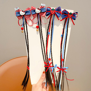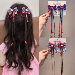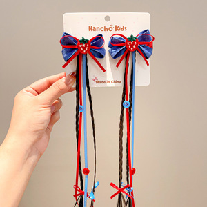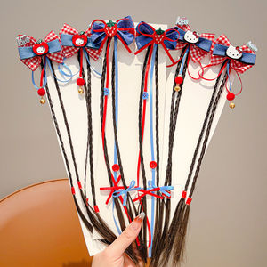 甜美郁金香蝴蝶结假发辫小女孩抓夹公主儿童双马尾发夹麻花辫发饰