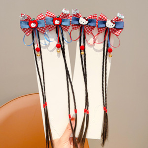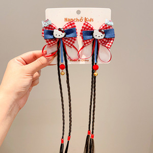 4#黑白凯蒂猫格子编发发夹【2件套】