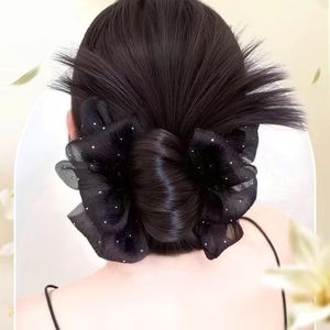 抓夹鸡毛丸子头假发蝴蝶结花苞头女低扎懒人神器自然蓬松新款盘发