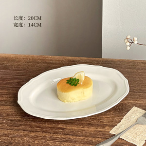法式复古陶瓷椭圆盘蛋糕甜品盘早餐盘牛排西餐盘白色碟子平盘盘子