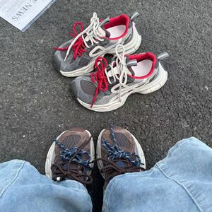 欧货网面双鞋带小怪兽老爹鞋2025秋款时尚拼接百搭运动休闲鞋潮鞋