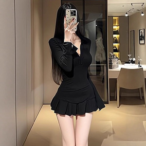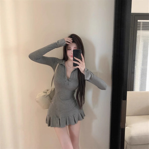 2025韩系辣妹穿搭小个子短裙套装秋季修身收腰显瘦气质V领两件套