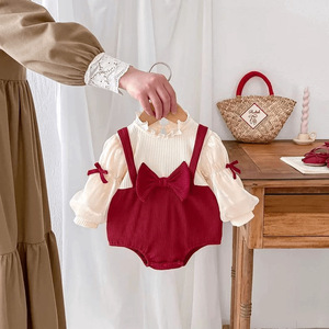 婴儿包屁衣春秋洋气衣服红色满月百天周岁礼服女宝宝公主连体哈衣