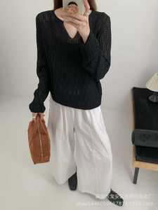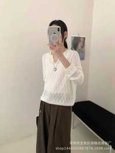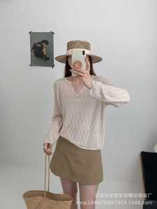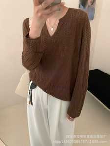 琪镌绘制秋冬季新款V领女装镂空设计宽松慵懒风休闲打底毛衣6516