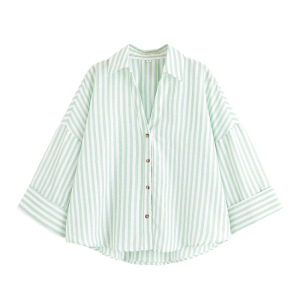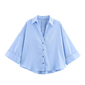 外贸2025春季新款长款时尚宽松休闲设计感小众衬衫上衣2340939