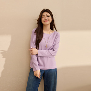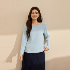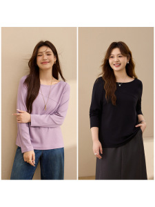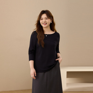 【气质船领T恤】纤莉秀大码女装简约显瘦长袖上衣胖mm2025秋新款