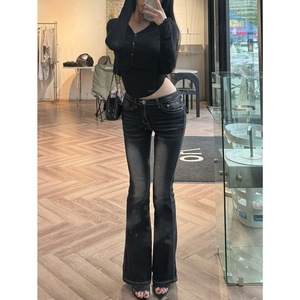 自带丰胯垫低腰直腿精裤子韩国秋季设计感水洗高光牛仔裤喇叭裤潮
