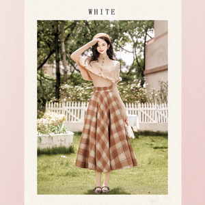秋冬新款法式小众针织毛衣斗篷套装裙毛呢格子半身裙搭配一整套
