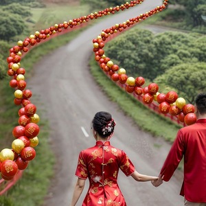 【路边款】风车套餐喜庆红金色气球引路(50米)
