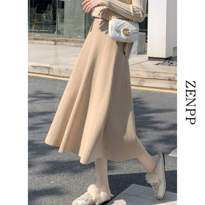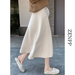 白色针织半身裙女春秋高腰a字长裙子半裙中长款伞裙春秋2025新款