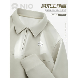 蔚来灰工作服定制半拉链长袖卫衣刺绣印logo字立领纯色班服文化衫