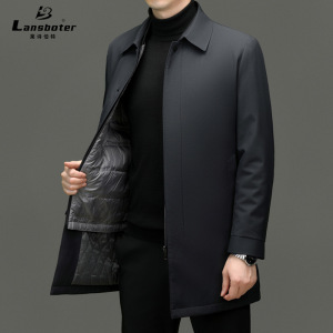 一衣三穿秋冬新款90白鸭绒长款羽绒服脱卸内胆羽绒大衣爸爸装外套