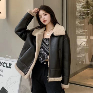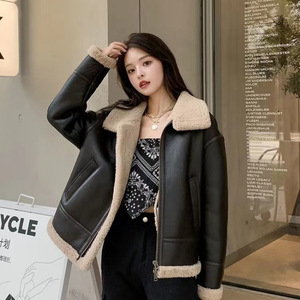 新款仿美利奴羊羔绒加厚皮毛一体休闲机车女款短外套潮