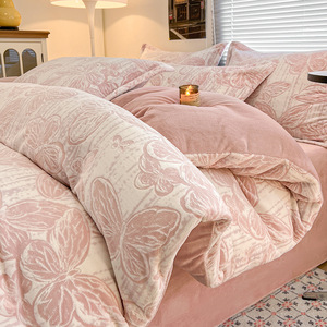 A类加厚雕花牛奶绒四件套冬季珊瑚绒法兰绒被套床笠保暖床上用品