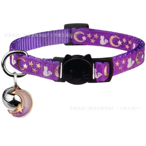 跨境爆款猫项圈吸光后夜光烫金星星月亮项圈可爱猫咪项圈现货批发
