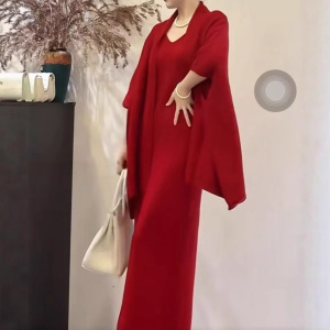 PH50829大爱美依缘2025秋季新款吊带连衣裙+斗篷披肩显瘦两件套