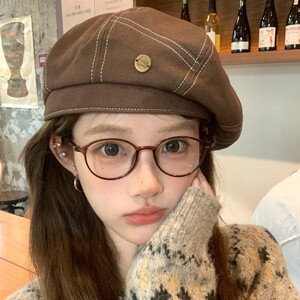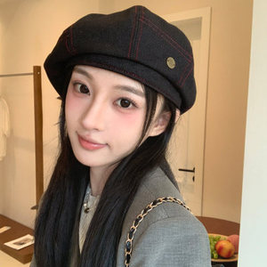 韩版百搭金属标牛仔贝雷帽女春秋复古氛围感画家帽显脸小八角帽子