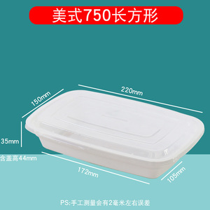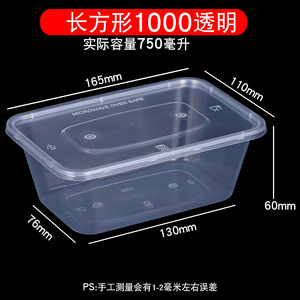 一次性长方形750商用餐盒外卖打包盒加厚带盖饭盒塑料食品快餐盒