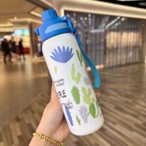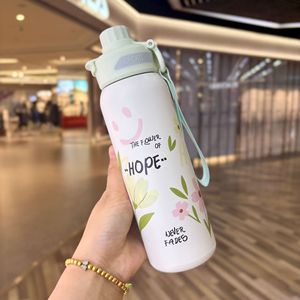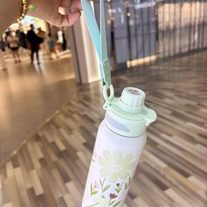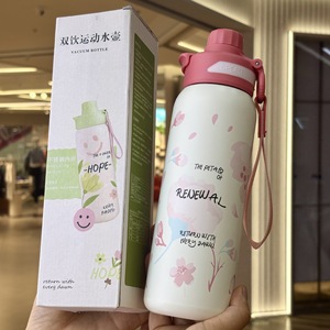 小清新风个性印花手提运动不锈钢保温杯运动双饮便携网红学生水杯