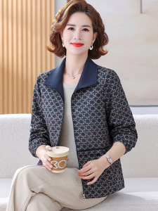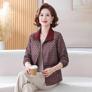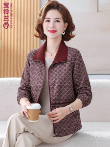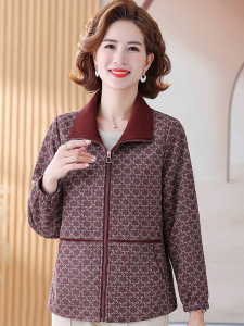中老年女装2025秋装新款翻领外套大码妈妈装春秋格子洋气外衣上衣