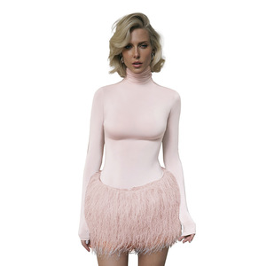 三湖连江Y25ST357欧美女装秋季新款气质修身高领长袖毛毛套装跨境