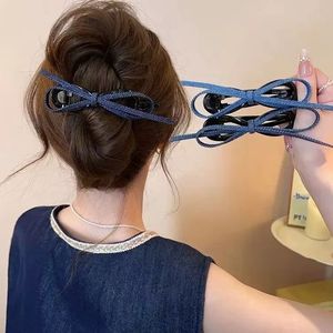 韩国ins简约牛仔蝴蝶结抓夹女2025新款东大门高级感发夹鲨鱼夹发