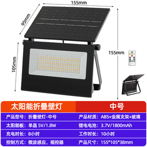 跨境太阳能庭院投光灯户外照明花园led可折叠人体感应壁灯智能