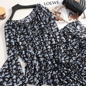 [现货]朱珠同款雪纺碎花连衣裙宽松大码时尚气质度假风印花长裙女