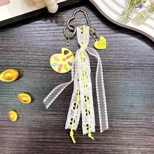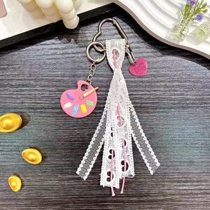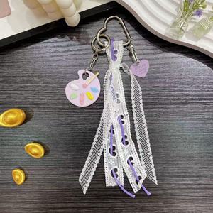 新款流苏蕾丝diy爱心小香风调色盘钥匙扣挂件手机包包钥匙挂饰