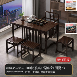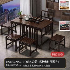 1米茶桌+底部上水电器+高梳椅+围椅3+茶具