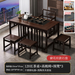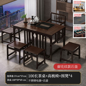 1米茶桌+石盘+全自动电器+高梳椅+围椅4
