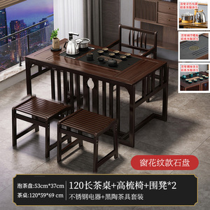 1.2米茶桌+电器+高梳椅+围椅4+石盘茶具