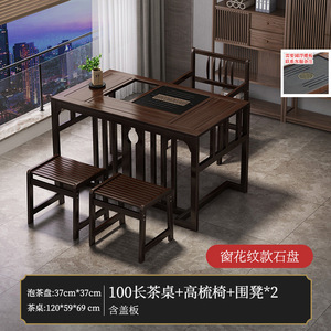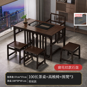 1米茶桌+石盘+高梳椅+围椅2