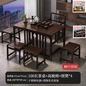 1米茶桌+底部上水电器+高梳椅+围椅4+茶具