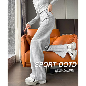 2025新款lulu同款阔腿裤女宽松高腰小个子百搭休闲速显瘦运动裤