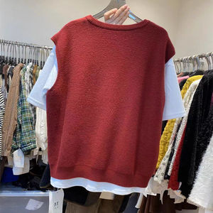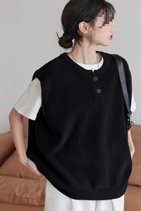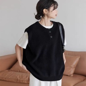 春秋新款针织马甲圆领韩版背心纯色宽松毛衣套头休闲百搭坎肩上衣
