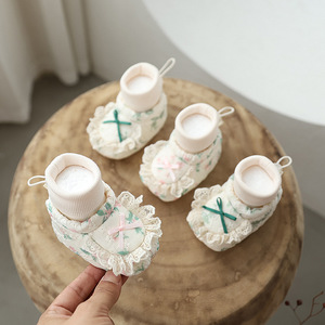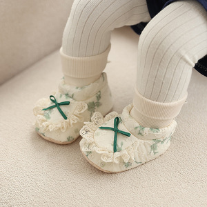 春秋季新生婴儿鞋袜3-6-12个月女宝宝小月龄公主风软底防掉步前鞋