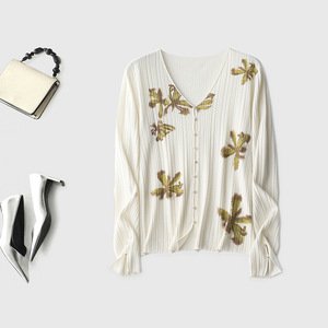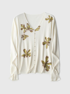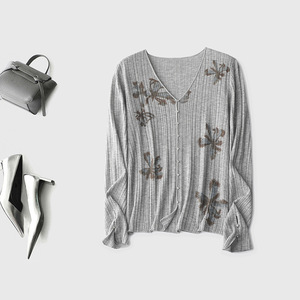 墨染江南新中式显瘦水墨印花针织羊毛开衫 绵羊毛混纺V领显瘦