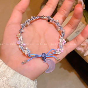 ins风珍珠编织月亮吊坠手链女复古时尚个性花朵手环民族风手饰品
