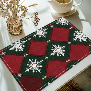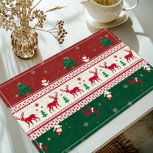 亚马逊跨境新款圣诞节餐垫餐厅餐桌隔热亚麻杯垫派对装饰