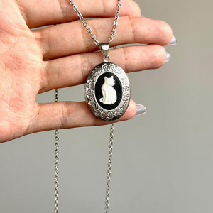 新款可爱卡通猫咪相框盒吊坠项链个性创意可打开放照片的毛衣链