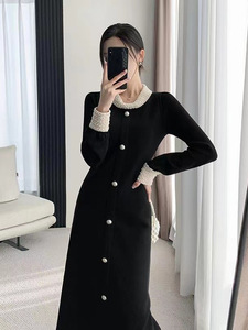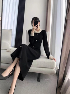 哥家商场同款女装2025秋季法式显瘦时尚高级感别致独特黑色连衣裙