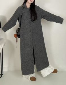 跨境外贸中长款连帽针织开衫大衣女秋冬新款慵懒宽松休闲毛衣外套