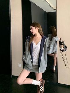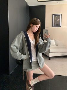 工厂自制 美式撞色连帽卫衣外套女2025新款早秋穿搭慵懒上衣开衫