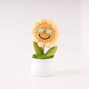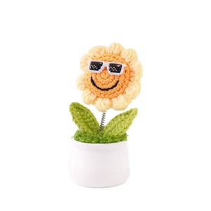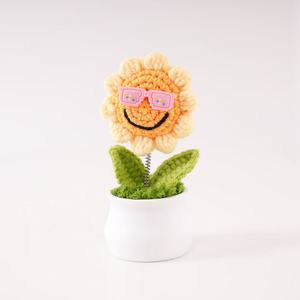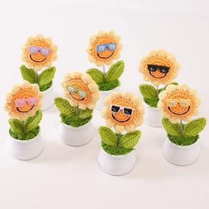 成品跨境毛线笑脸眼镜摇摆弹簧向日葵盆栽仿真花桌面车载摆件教师